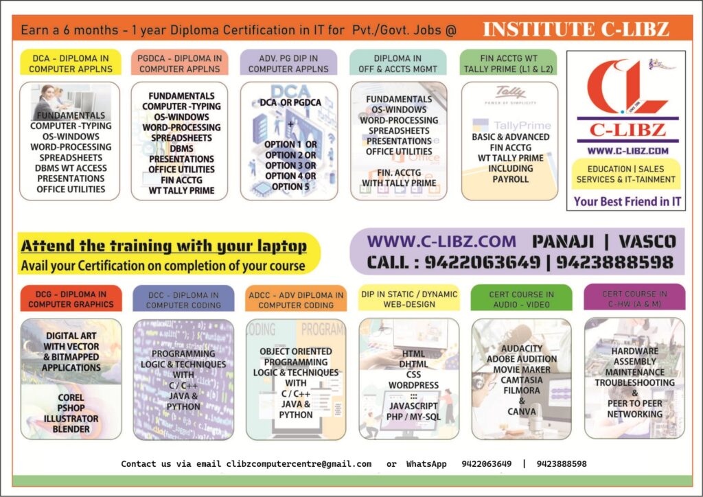 Walk In With Your Laptop at our Institution and Gain Practical Skills under the guidance of the Experts at C-LIBZ b01b02 Download Your Admission Form Here. Pl wait until it downloads Dr.Pramod Sawant, Hon. Chief Minister of Goa compliments contribution of C-LIBZ in the field of IT C-LIBZ receives the memento for participating at G-TECH EXPO organised by CDFG under the presidentship of S Fernandes, Proprietor of C-LIBZ