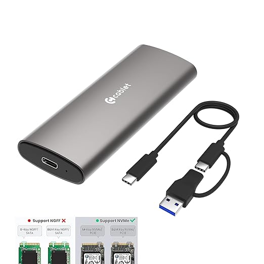 - [Wide Compatibility] – Supports M-Key and M+B Key NVMe SSDs in sizes 2230, 2242, 2260, and 2280. Compatible with Windows, macOS, Linux, and Android devices.