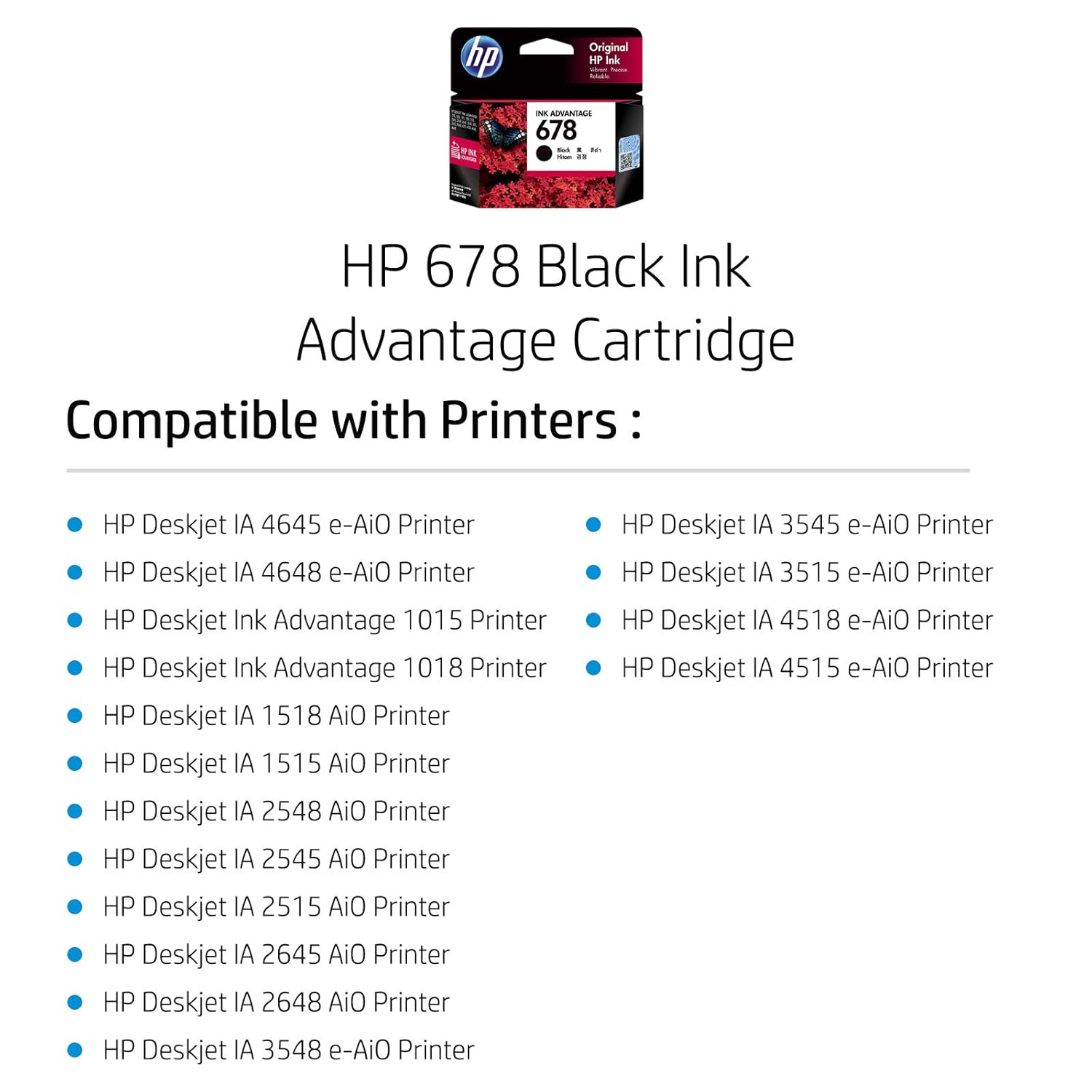 Previous Product Next Product HP 678 Original Ink Advantage Cartridge (Black) ₹850 *No Delivery Option Available. Pickup at C-LIBZ Store* HP 678 Original Ink Advantage Cartridge (Black) quantity Add to cart Description Description Opens in a new window Tweet This Product Opens in a new window Share on Facebook Opens in a new window Pin This Product Opens in a new window Mail This Product Related products Out of Stock HP 46 Original Ink Advantage Cartridge (Black) ₹860 HP 46 Original Ink Advantage Cartridge (Tri-color) ₹800 HP 682 Original Ink Advantage Cartridge (Tri-color) ₹828