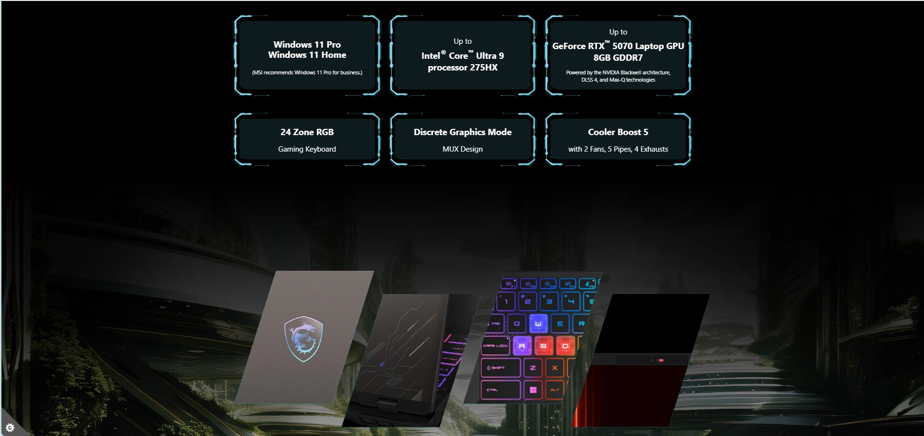 MSI CROSSHAIR 16HX AI | CORE ULTRA 9 | 16GB DDR5 | 1TB NVMe | RTX 5060 8GB | WIN 11 | 16” QHD+ 240Hz | COSMOS GREY