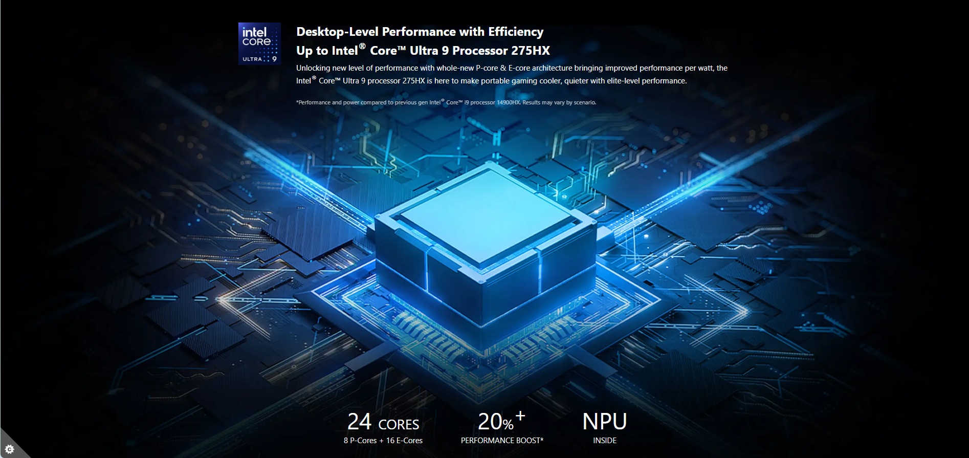 | CPU | Up to Intel® Core™ Ultra 9 200HX Series Processor |