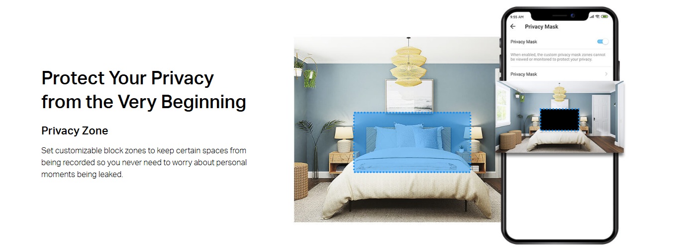 - Privacy Mode: Users can enable Privacy Mode to stop recording and control when the camera is monitoring and when it’s not.